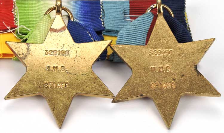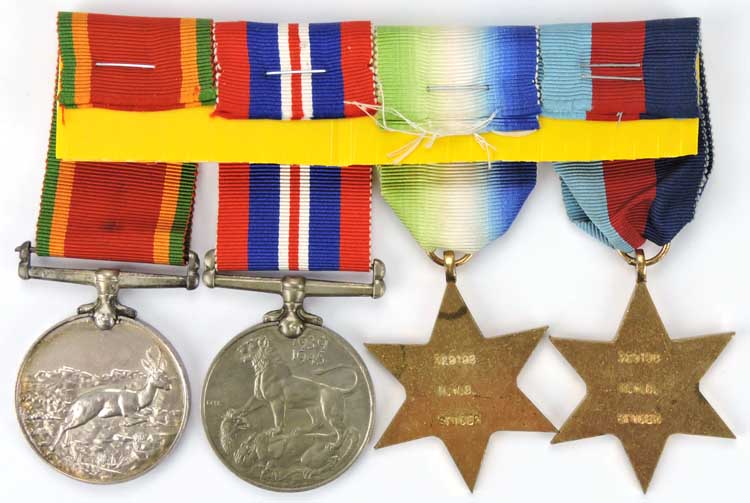 Nice grouping. 1939-45 Star, Atlantic Star, War Medal and South African Service medal. All named to a Harold Spicer. The ribbons have been stapled to a small cardstock strip by the previous owner. They should really be nicely mounted. Comes with a copy of Spicer’s service record.