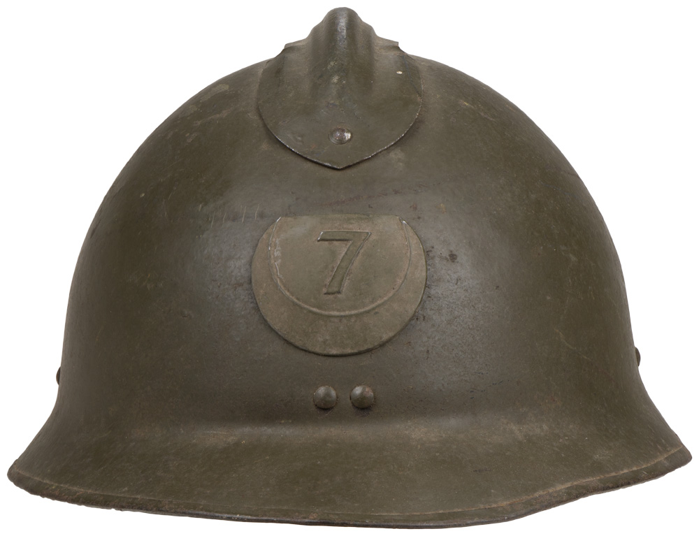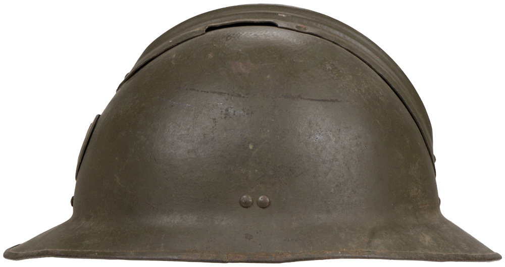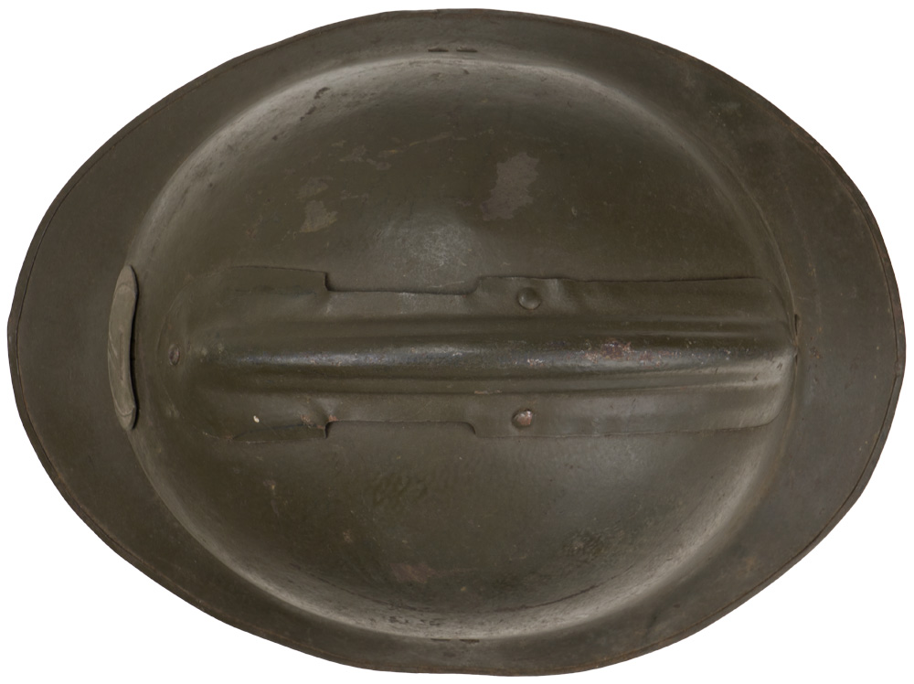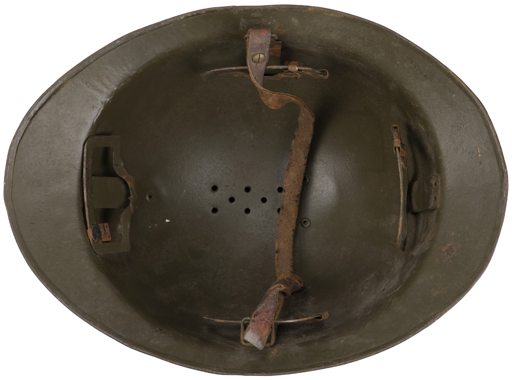 BACKGROUND: The French were the first to have a general issue, "modern ", steel helmet in WWI and developed the classic "Adrian" style helmet in early 1915 followed by the British army later that year and by the German’s in 1916. By September of 1915 most French front line personnel had received the helmet and by the end of the year over three million had been manufactured and distributed. The next helmet produced by the French was the M26. It differed from the M16 by being pressed out of a single piece of manganese steel and had a different liner making it easier to manufacture.