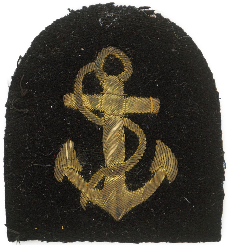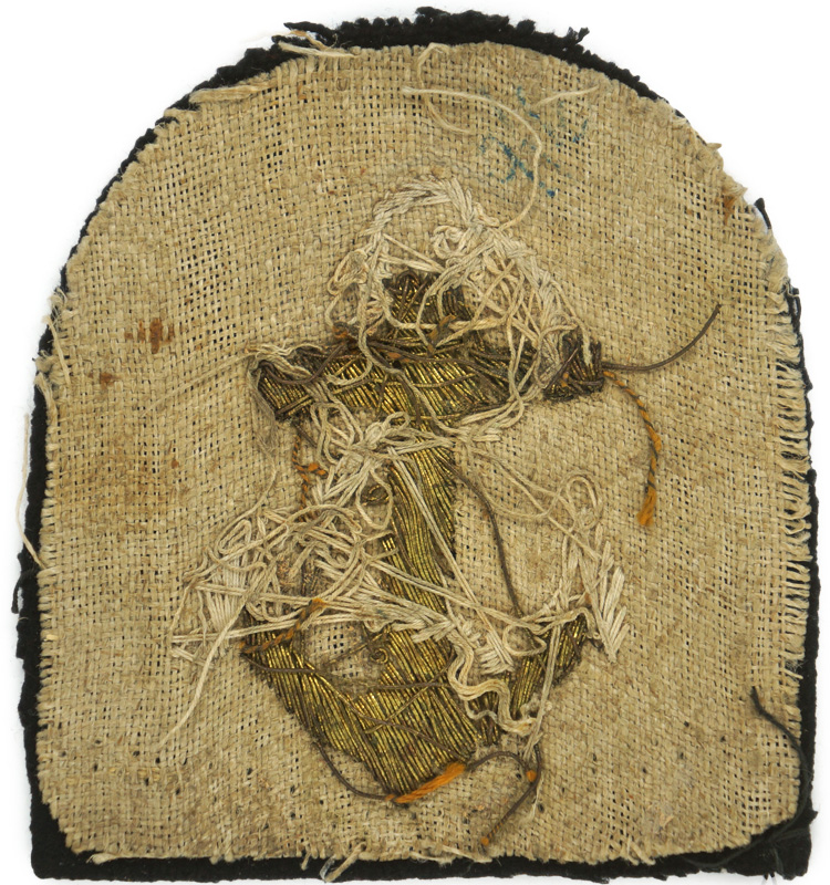 A 7cm x 7.5cm, dark blue wool, machine embroidered badge with bullion thread. Complete with it’s original cloth backing.