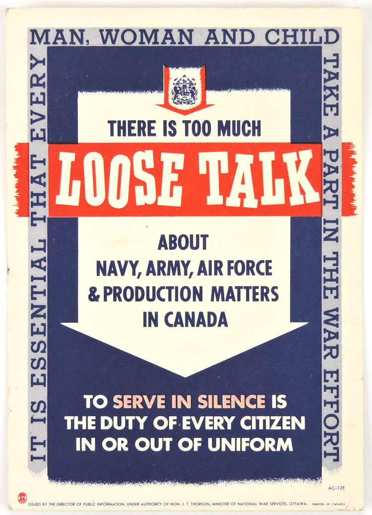 C025381 CANADIAN WW2 PROPAGANDA LEAFLET "LOOSE TALK".