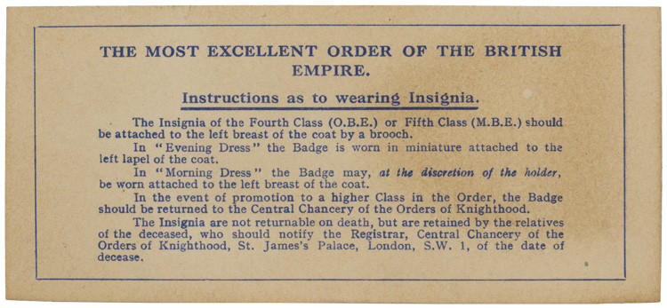 An Order of the British Empire Civilian metal with miniature in original white silk and velvet lined "Royal Mint" hinged case. Included is an instruction insert on how the award is to be worn. The case measures approximately 14cm x 7.5cm x 2cm.