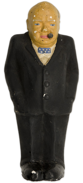 A 18cm tall painted plaster figure of Winston Churchill. There is some wear and chipping to the paint, but overall a really cool item.