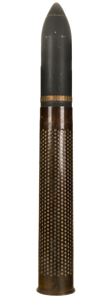 A 105x607mmR M368 Dummy Cartridge used in M40 series of recoilless rifle. 105x607mmR M368 Dummy Shell in a T75 Cartridge Case. Cartridge case base is 1953-dated. Measures approximately 98cm long with a 13cm diameter bottom. HEAVY!