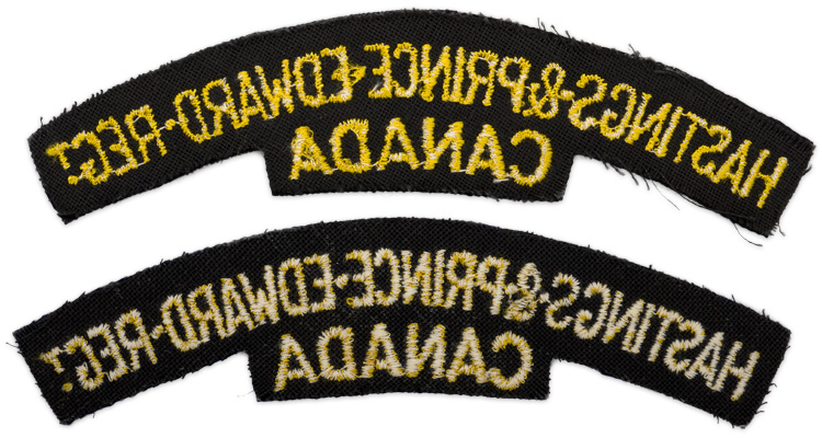 C030489 "HASTINGS & PRINCE EDWARD REGT. CANADA". SHOULDER FLASHES.