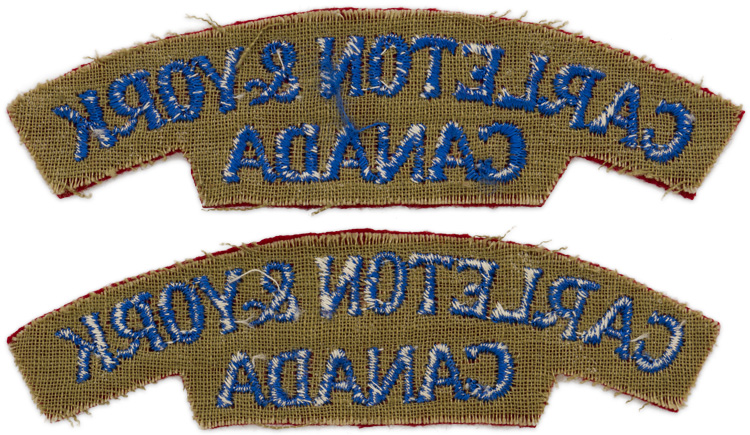 C030789 "CARLETON & YORK CANADA" SHOULDER FLASHES.