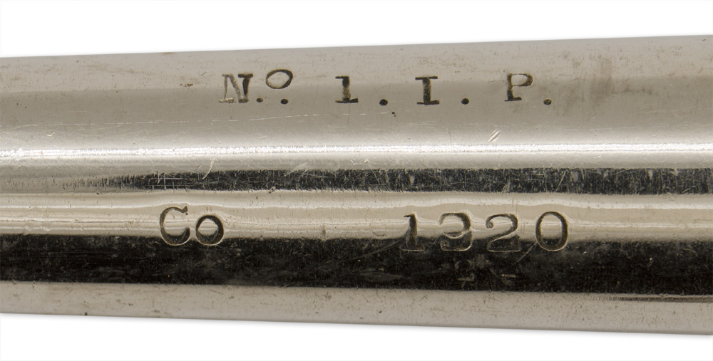A 32cm long lance head along with a 18cm long shoe. The head is marked "No. I.I.I.P Co. 1920", while there are no visible markings to the shoe. Remnants of grease is to the inside of each piece. Remnants of tape is also present to the shoe.