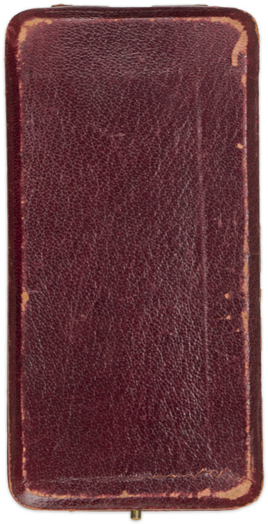 A 90mm badge with the hinge pin that has broken off, but is included. The pin is marked. Included is a paded12cm x 23cm hinged case with a gilt "R.F." to the top of the lid. There is a small medal that would normally be with this in the top section of the case which is missing.