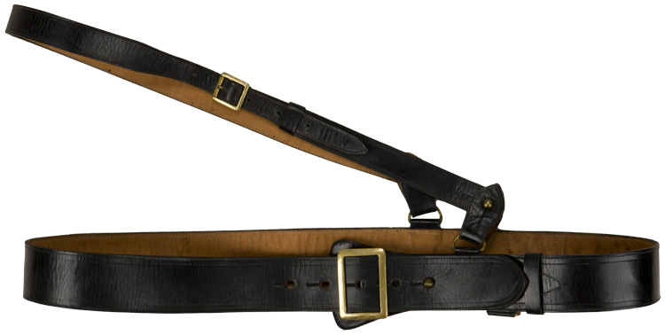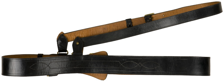 4. The black leather belt with cross strap measures approximately 138cm in length with the cross strap measuring approximately 97cm in length. The leather remains strong and supple.