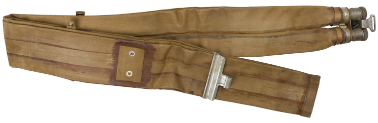 This type of belt was issued by the U.S. Navy in confined spaces on warships and most notably in the Normandy Invasion. The belt is clearly marked "Sep. 23, 1944", as well as with the manufacture name "Durkee Atwood Co., Mpls." All hoses, fitting and snaps are complete.