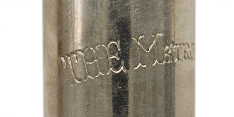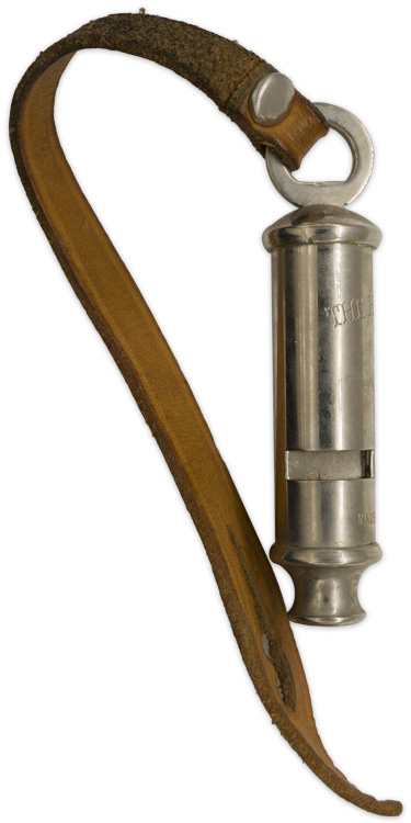 A whistle with leather strap (used to attach to a shirt/tunic button) that is marked "The Metropolitan", as well as "Made in England". Most probably WW2 era.