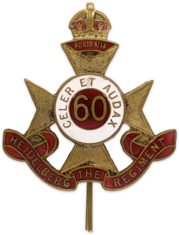C033084 AUSTRALIAN "60TH BATTALION, THE HEIDELBERG REGIMENT" CAP BADGE.