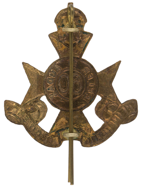 A brass and enamel badge measuring approximately 5cm x 5cm with a pair of lugs and cotter pin to the reverse.