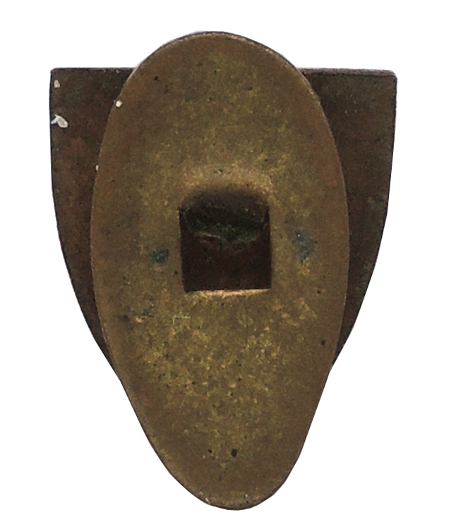 A small 1.5cm x 1.5cm brass and enamel lapel badge.