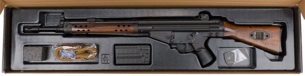 LCT LC-3 G3 Airsoft AEG w/ Real Wood. The LC-3 is made by the high quality air gun manufacturer, LCT Airsoft, based in Taiwan. This wooden variant features handguard and stock that use old wood instead of new wood to replicate a battle-worn rifle. Each rifle is made with different types of wood, making for a truly unique gun in each version. Batteries and chargers not included. Weight: 4.39 kg (8.02 lbs) Length: 1028 mm (40.47 in) Barrel: 515 mm (20.28 in) Power Source: Electric Action: Semi & Full-automatic Ammo Type: 6mm airsoft Bbs Ammo Capacity: 140 rounds FPS: 400.
