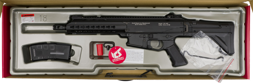 The ICS CPX-APE SF1 AEG Airsoft Rifle. Brand new & mint in the box. The ICS CPX-APE SF1 AEG Airsoft Rifle is sold for sure with great weight and feel to it being that it is mostly metal. All the controls work exactly like you would expect on a the real powder burner and you can totally take this Airsoft rifle apart in just a minute or two with virtually no tools.