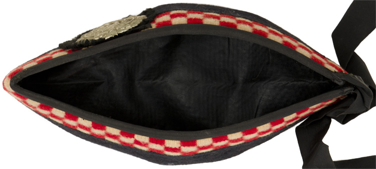 : The Glengarry’s origins may be traced to Alasdair MacDonell (1771-1828) of Glengarry, Scotland, and was adopted by the British Infantry in 1868, and the Canadian militia in the 1870s. It was worn on dress occasions, by traditionally Scottish Infantry Regiments, during both world wars. Mobilized at the beginning of the war, the Seaforth Highlanders served in Italy from 1943 to 1945 (as part of the 2nd Infantry Brigade of the 1st Infantry Division), and in North West Europe from March of 1945 until the end of hostilities.PHYSICAL DESCRIPTION: A black woven wool "wedge" cap has a red wool Touri (pom-pom) to its crown, black rayon edging along its base, and approximately 29cm long, dual black rayon ribbons, with swallow-tail cut ends, extend from its reverse. A 3cm tall diced band is along its sides, in white, red and black, over the left front of which is fixed a black rayon rosette. A stamped, white metal alloy badge consisting of a wreath of thistle encompassing a circle with "Argyll and Sutherland" that is surmounted by a coronet. A profile of a boars head and a rampant lion are present to the center of the circle. The interior is fully lined. There are some small moth holes to the same side as the badge and one of the ribbons has a small tear along its seam.