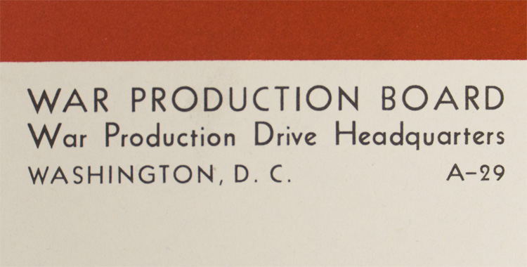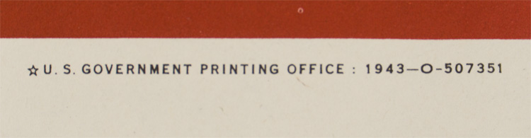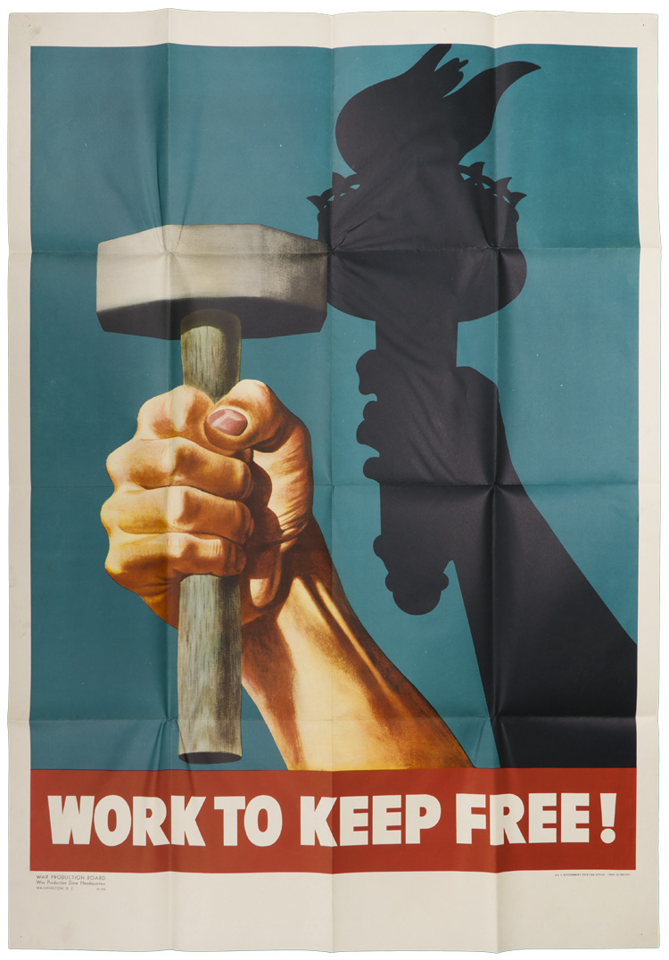 A 72cm x 102cm poster that is dated for 1943. The poster measures approximately 18cm x 26cm when folded. Heavy fold lines. Of Note: This is one of 34 posters from the estate of Edward Emanual Alborg, who was an employee that worked at the War Production Board from 1943-1945.