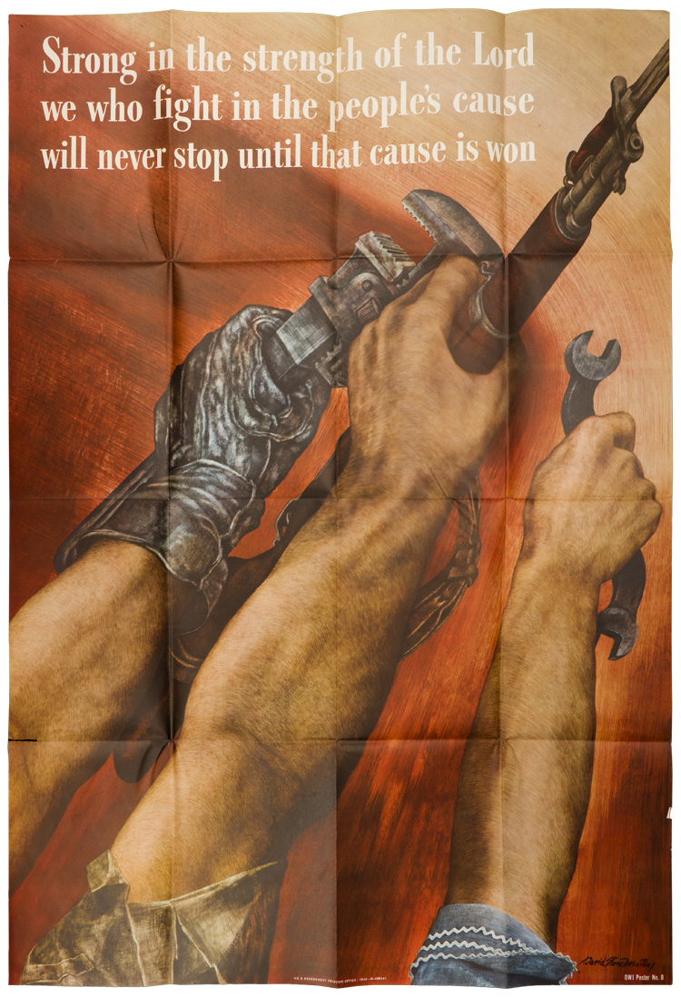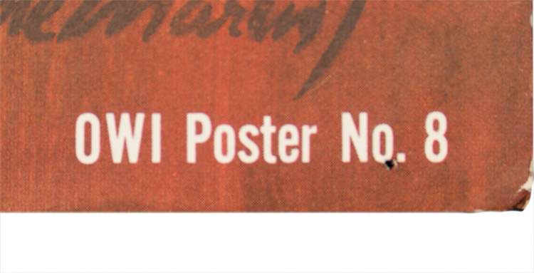 A 72cm x 102cm poster that is dated for 1942. The poster measures approximately 18cm x 26cm when folded. There are tack holes to each corner, some tears along horizontal folds, as well as some edge wear. Of Note: This is one of 34 posters from the estate of Edward Emanual Alborg, who was an employee that worked at the War Production Board from 1943-1945.