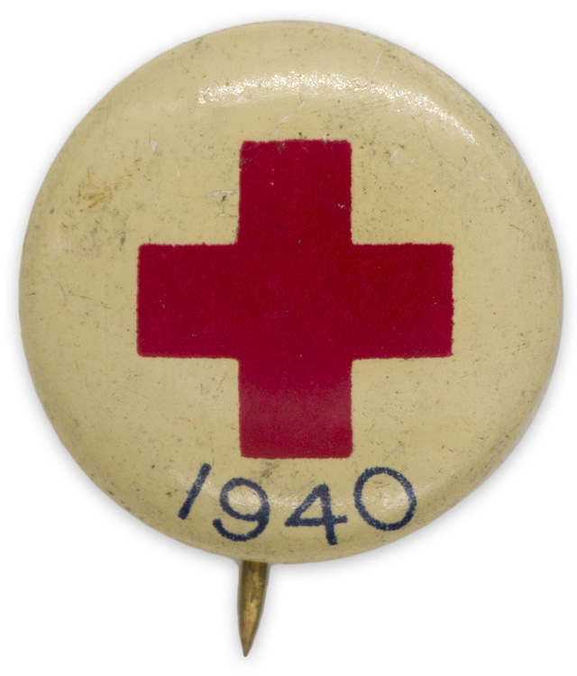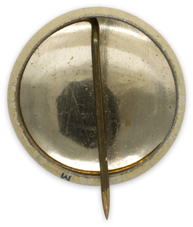 A 1.5cm diameter magnetic alloy painted badge with pin attachment.
