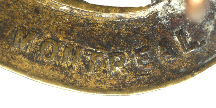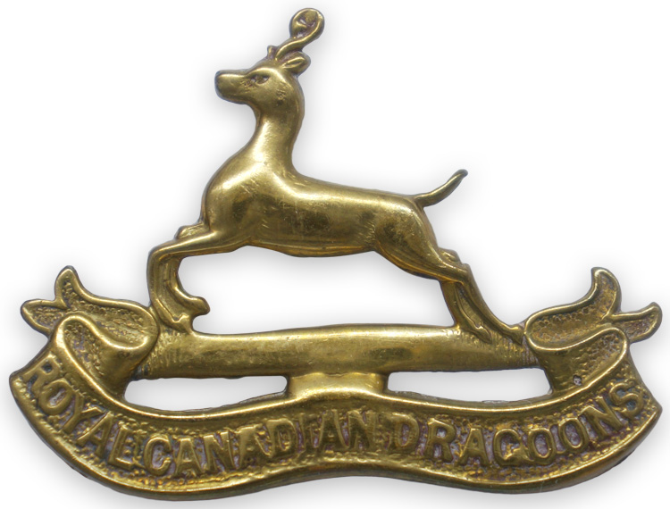 : Every infantry or armored regiment had its own insignia. Cap badges were usually made of white metal, brass, copper or bi-metal. Most commonly brass and white metal were used. Officers were sometimes known to wear private purchase cap badges made of silver or silver bullion. The Royal Canadian Dragoons (RCD) is an armoured regiment that since its inception on 21 December 1883 has seen continuous service. It was first known as the Cavalry School Corps and was officially renamed the Royal Canadian Dragoons on 24 may 1893.PHYSICAL DESCRIPTION: A brass stamped cap badge, 5cm x 3cm, of a springbok (a small antelope) bounding over a scroll embossed with the inscription "Royal Canadian Dragoons." The reverse is a mirror image of the obverse which has double lugs. Manufacture marked.