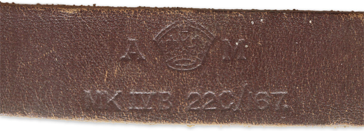 A pair of black painted Mk IVB goggles with leather and chamois nose piece. The rubber face pads have hardened and deteriorated due to age. The leather strap is Air Ministry marked, as well as marked "AM MK IVB 22C/167".