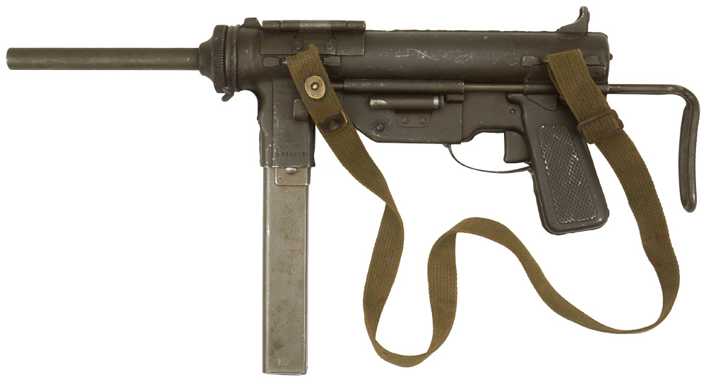 The M3 is an American .45-caliber submachine gun adopted for U.S. Army service on 12 December 1942, as the United States Submachine Gun, Cal. .45, M3. The M3 was chambered for the same .45 ACP round fired by the Thompson submachine gun, but was cheaper to produce and lighter, although, contrary to popular belief, it was less accurate. This myth stems from a US Army training film portraying the M3 as more accurate than its counterparts. The M3 was commonly referred to as the "Grease Gun" or simply "the Greaser," owing to its visual similarity to the mechanic's tool. The M3 was intended as a replacement for the Thompson, and began to enter front line service in mid 1944. (WiKi) The M3 is complete and in very nice condition. Serial number of "0235213". Magazine does not remove. No cock or click deactivation. Original sling. Perfect for Museum uniform display. Nice!