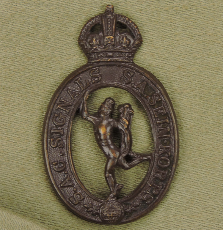 Light weight tan-colored, private purchase, overseas cap. South African Signal Badge. Fully lined. Decent large size, probably a 58 or 59. Nice cap.
