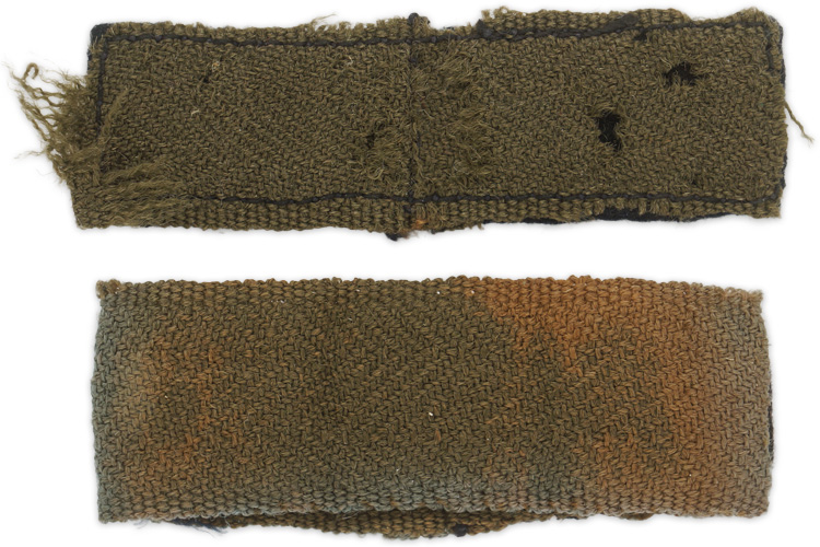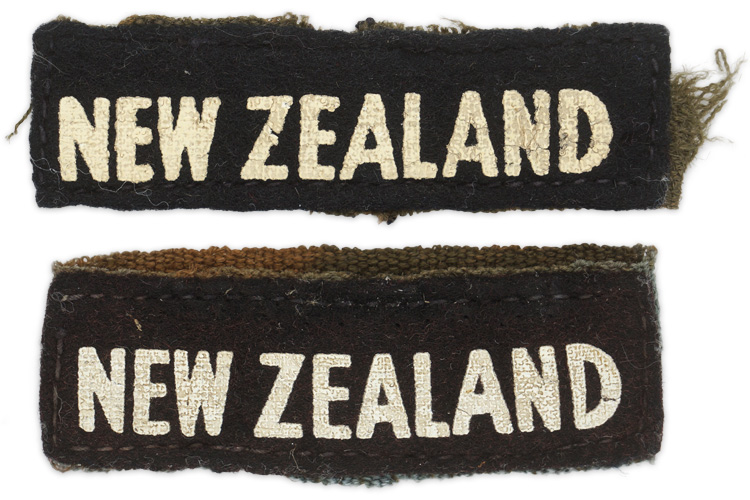 White letters "New Zealand" on black backgrounds. Slightly mismatched pair, in that the tops are perfectly matching, but the backs are different. These were worn by the Long Range Desert Group and probably other New Zealand formations. Excellent condition. Scarce.