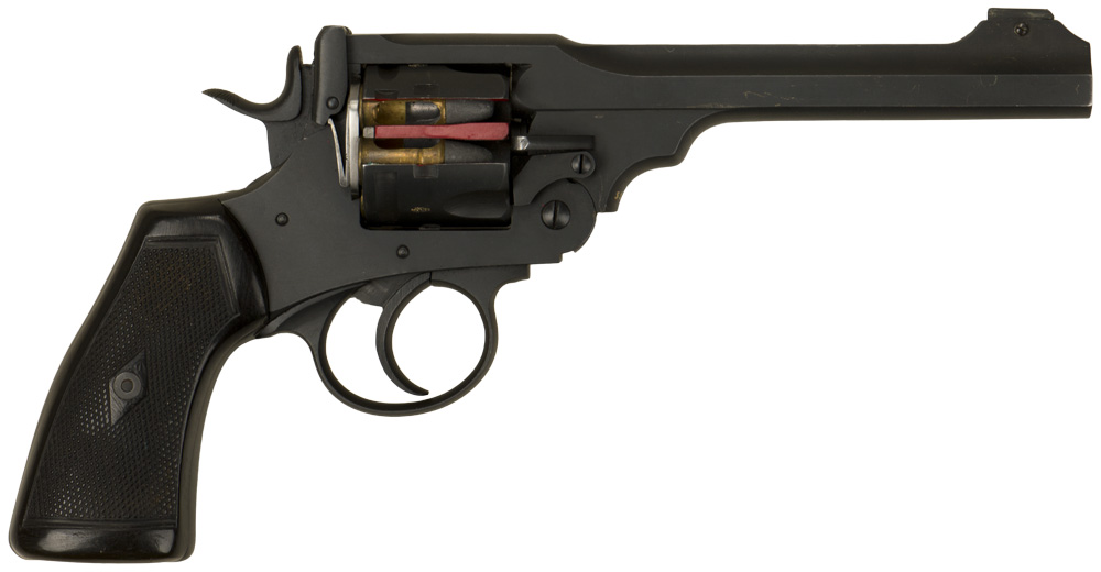 BACKGROUND: The Webley MKIV .455 revolver was known as the "Boer War" Model due to the large quantities of officers who purchased them on the way to partake in the conflict. During WWI the MkVI became the standard sidearm for British and Commonwealth troops as was distributed to all arms of the military.