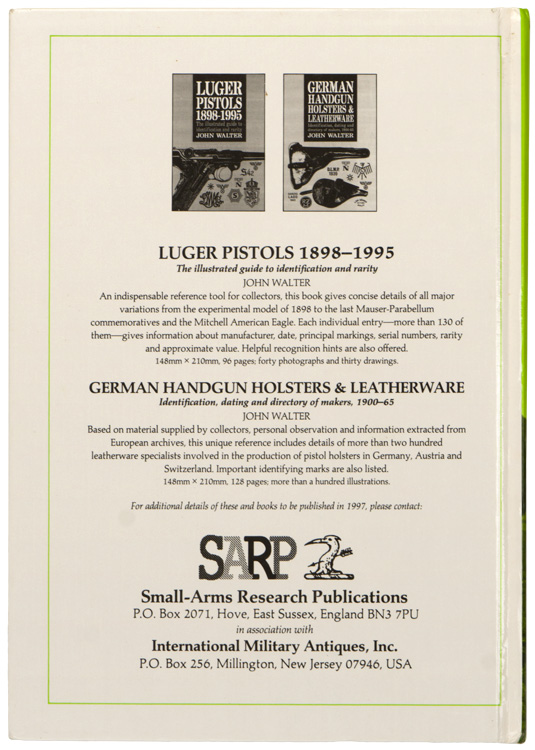 A signed hardcover reference book approximately 15.5cm x 22cm written by John Walter and published by Small-Arms Research Publications in 1996. Gordon A. Hughes acted as a consultant on this book. There are 128 pages of black and white text with black and white photos and sketches.
