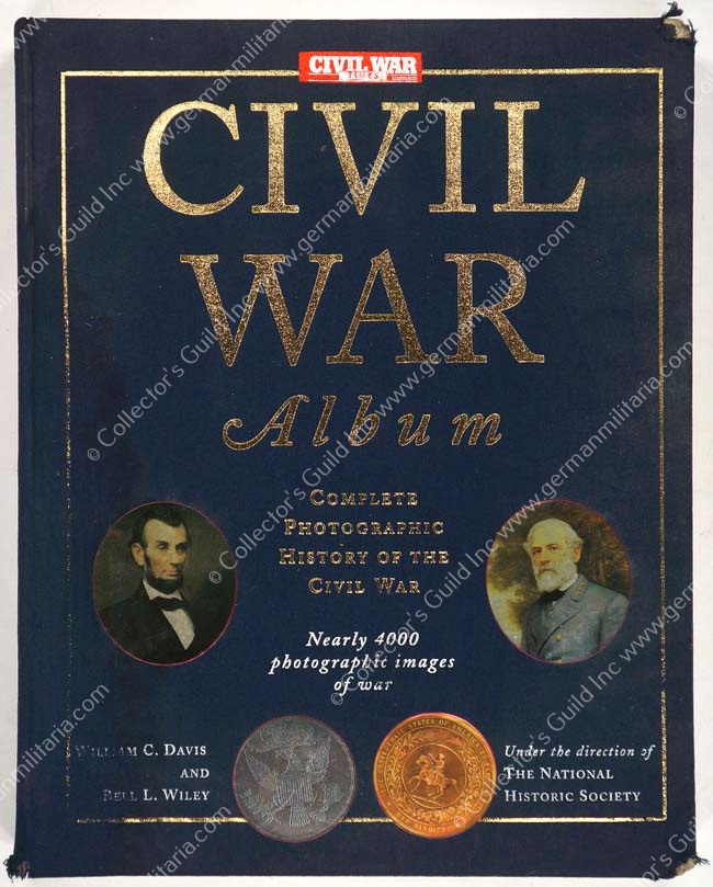 A large, coffee table style, hardcover book that measures approximately 30.5cm x 39cm that consists of 931 pages of glossy, black and white captioned photographs. The book was edited by William C. Davis and Bell L. Wiley under the direction of the National Historic Society. It has a copyright 2000 and published by the Tess Press of New York. The covers show some wear with a water stain visible to the bottom.