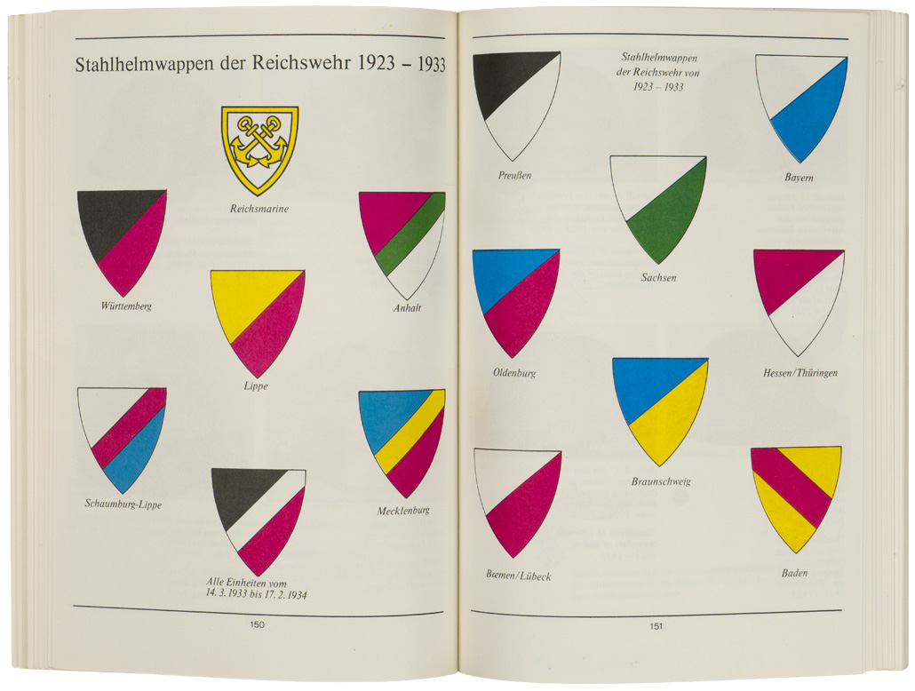 A softcover 17.5cm x 25.5cm book written by Ludwig Baer. Written in the German, the book consists of 233 pages. The bible for helmet collectors, tons of information about codes, manufacturing, etc.