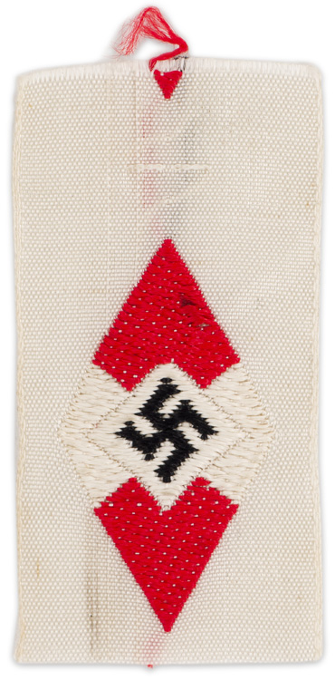 BACKGROUND: The origins of the Hitler Jugend, (Hitler Youth), may be traced back to March 1922 with the formation of the Jugendbund der NSDAP, Nationalsozialistische Deutsche Arbeiterpartei, (Youth League of the National Socialist German Worker's Party), under control of the SA, Sturmabteilung, (Storm/Assault Detachment). In April 1924 the Jugendbund der NSDAP was renamed Grossdeutsche Jugendbewegung (Greater German Youth Movement), and on July 4TH 1926 the Grossdeutsche Jugendbewegung was officially renamed Hitler Jugend Bund der deutschen Arbeiterjugend, (Hitler Youth League of German Worker Youth). In 1933 the Hitler Youth introduced the HJ diamond as their organizational emblem and featured it on a wide variety of flags, pennants and clothing items.
