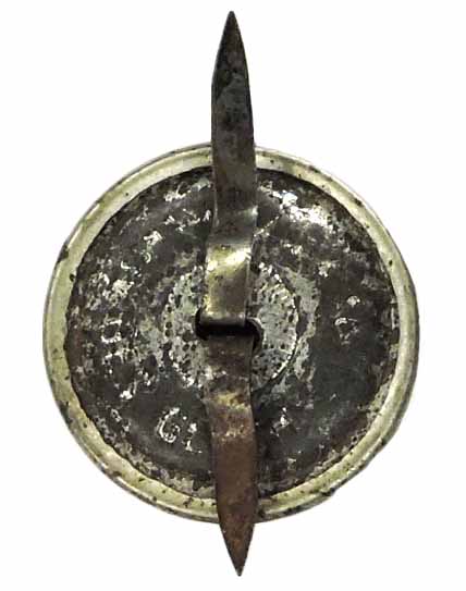 A 21mm button overseas cap button. Assmann marked. Prongs complete. Scarce.