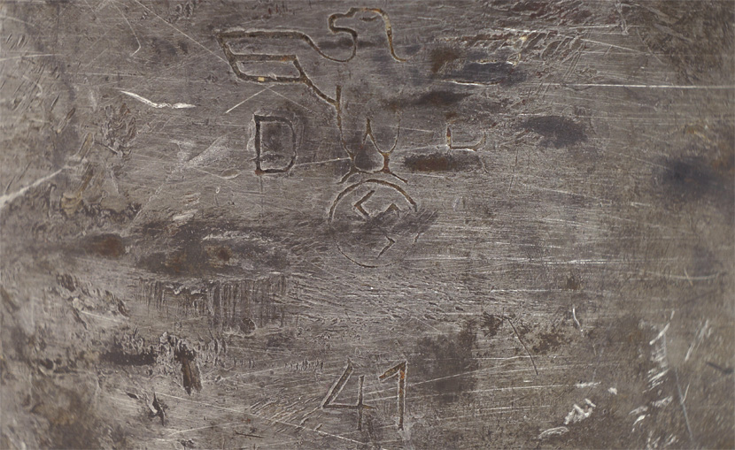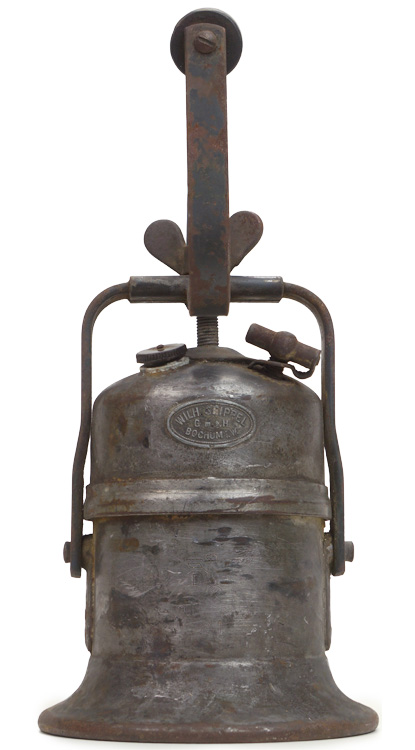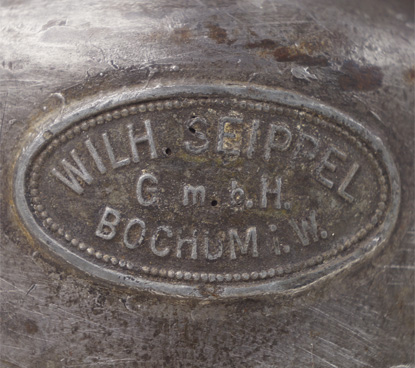 PHYSICAL DESCRIPTION: A steel lantern measuring approximately 28.5cm tall with the handle extended with a 13cm diameter bell that is complete with original wood handle. A small plate to the front reads "Wilh. Seippel G.m.b.H., Bochum" along with a nice "DR" and eagle marking and the number "41" below the plaque. The lantern shows heavy usage and wear, but the lantern open nicely.