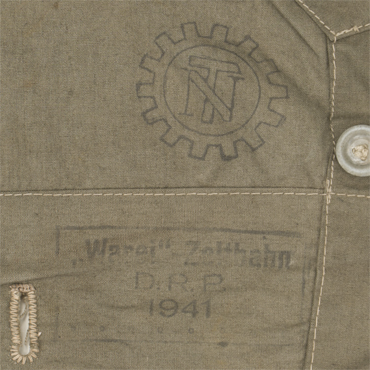 Feldgrau waterproof canvas construction. Several small tears and a few paint stains. Buttons look to be mostly complete. Superb TeNo markings. Rare!