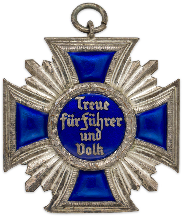BACKGROUND: The NSDAP Long Service Awards were instituted in three classes on April 2ND 1939 for award to long serving party members. Requirements for bestowal consisted of an unbroken, unblemished period of time served in any of the various NSDAP Party formations. Time served between February 1925 and January 1933 during the "Kampfzeit" (Time of Struggle) counted as double in recognition of the Old Guard. The distinction of the three classes was time served with the first class awarded for twenty five years service, fifteen years service for the second class, and ten years service for the third class.