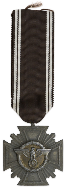 BACKGROUND: The NSDAP Long Service Awards were instituted in three classes on April 2ND 1939 for award to long serving party members. Requirements for bestowal consisted of an unbroken, unblemished period of time served in any of the various NSDAP Party formations. Time served between February 1925 and January 1933 during the "Kampfzeit", (Time of Struggle), counted as double in recognition of the Old Guard. The distinction of the three classes was time served with the first class awarded for twenty five years service, fifteen years service for the second class, and ten years service for the third class.