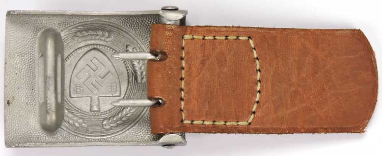 BACKGROUND: The basis of the RAD, Reichsarbeitsdienst, (National Labor Service), dates back, at least, to 1929 with the formation of the AAD (Anhalt Arbeitsdienst) and the FAD-B (Freiwillingen Arbeitsdienst-Bayern), Shortly after Hitler's appointment as Chancellor, (January 1933) the NSDAP consolidated these, and other labor organizations into the NSAD (Nationalsozialist Arbeitsdienst), a national labor service. On June 26TH 1935 the NSAD was re-designated RAD. Originally personnel serving with RAD wore a variety of earlier FAD/NSAD belt buckles until February 15TH 1936 when new pattern belt buckles for Officer's and EM/NCO's were introduced to provided uniformity in dress.