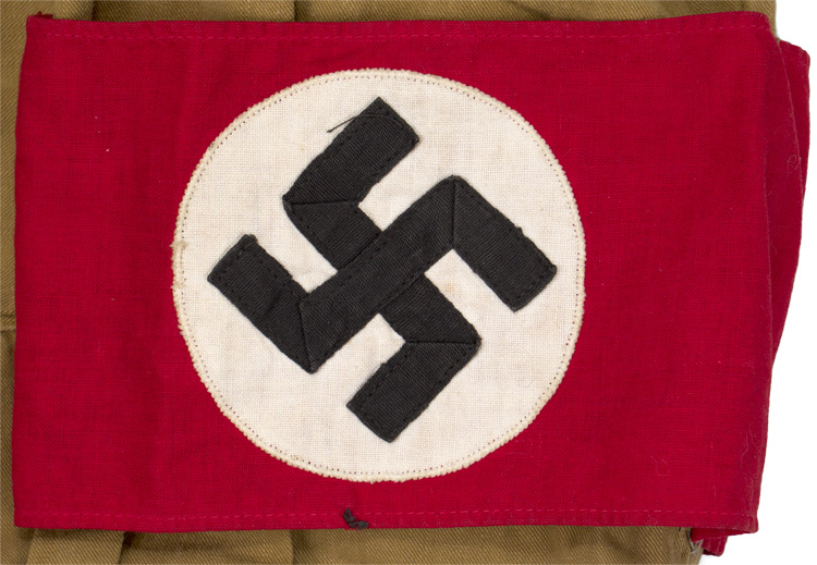BACKGROUND: Brown was to become the official color of the N.S.D.A.P. and S.A. by circumstance rather than design. A large stockpile of discounted, surplus WWI tropical brown shirts and fabric, intended for wear in East Africa, were located in Austria in 1924 and purchased by the Nazis as a temporary measure to bring uniformity of dress to their party members. In November of 1926 the brown shirt was officially introduced, and retained, as the basic uniform item for the N.S.D.A.P. and S.A., and was eventually adopted by other political organizations such as the H.J., D.A.F., and the N.S.K.K.