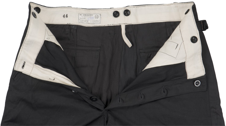 PHYSICAL DESCRIPTION: Tan colored cotton twill, long sleeved, three quarter length pull over shirt with a three button front with a lay down collar. A pleated patch pocket with a scalloped button down flap, is to each breast, as well as, fold back, pleated French cuffs. The buttons to the cuffs, pockets and front closure are all of light brown bakelite type. All of the insignia, Sleeve diamond, shoulder straps (sewn on), armband and edelweiss are all original but most probably collector restored to the shirt. The chest measures approximately 46". Few small stains. Comes with a textbook original pair of HJ shorts with their original HJ RZM tag. Shorts are a 30/32".