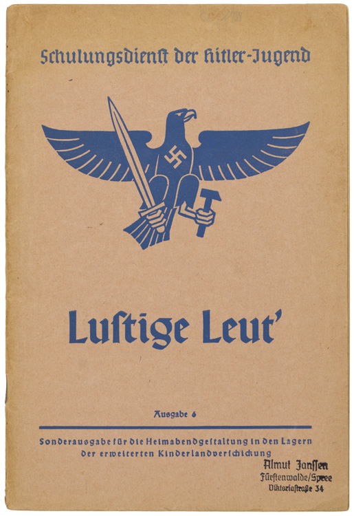 BACKGROUND: The origins of the Hitler Jugend, (Hitler Youth), may be traced back to March 1922 with the formation of the Jugendbund der NSDAP, Nationalsozialistische Deutsche Arbeiterpartei, (Youth League of the National Socialist German Worker’s Party), under control of the SA, Sturmabteilung, (Storm/Assault Detachment). In April 1924 the Jugendbund der NSDAP was renamed Grossdeutsche Jugendbewegung (Greater German Youth Movement), and on July 4TH 1926 the Grossdeutsche Jugendbewegung was officially renamed Hitler Jugend Bund der deutschen Arbeiterjugend, (Hitler Youth League of German Worker Youth). The traditional Prussian eagle can be traced back to Charlemagne who adopted it from the displayed eagle emblem featured on the Standards of the Roman Legions when he was crowned as emperor in 800 AD. The Prussian eagle was retained through-out the years with minor modifications. The Hitler Youth adopted the Prussian style eagle for use on the HJ Bannfahne and DJ Jungbannfahne, the HJ Standard bearers gorget the scabbard of the HJ Leaders Dagger, on musical instruments and assorted sports awards and events badges to perpetuate the Imperial Prussian military tradition. Originally the Prussian eagle clutched a sword in its right talon signifying justice and a scepter in its left talon signifying authority but in the HJ version this was altered to a sword and a hammer signifying nationalism and socialism respectively.