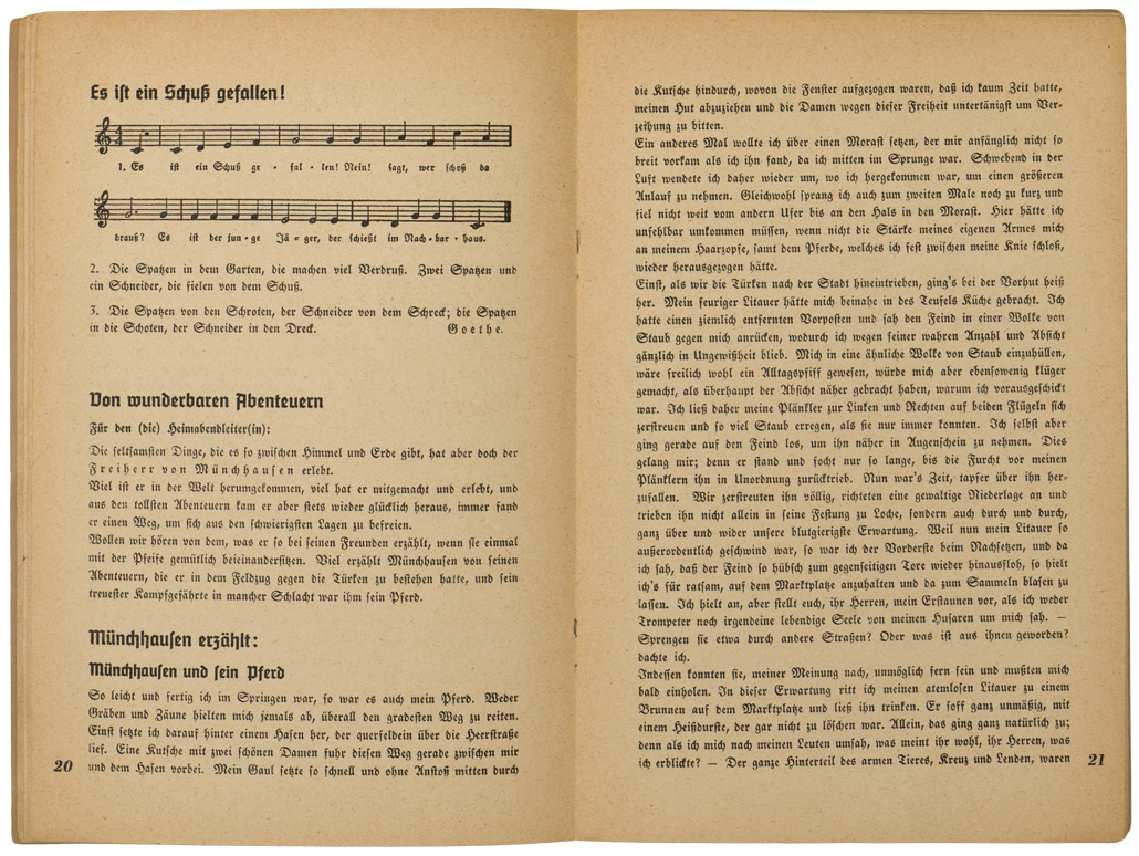 PHYSICAL DESCRIPTION: A soft cover booklet measuring approximately 15.5cm x 22.5cm that consists of 40 pages. The first page has a square section cut out of it, probably where the insignia was present. The pages show typical yellowing and wear and are intact.