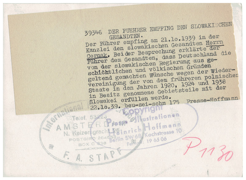 N034776 HOFFMAN PRESS PHOTOGRAPH ‘Der Führer Empfing Den Slowakischen Gesandten’.