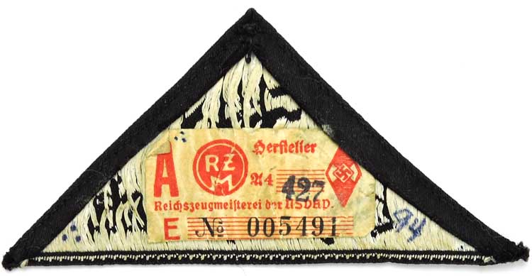 PHYSICAL DESCRIPTION: Black rayon construction isosceles triangle with a machine woven Gothic script in two lines, "Südost Bayr.Ostmark" in grey to its interior. The reverse of the has it original paper HJ RZM tag still in place.