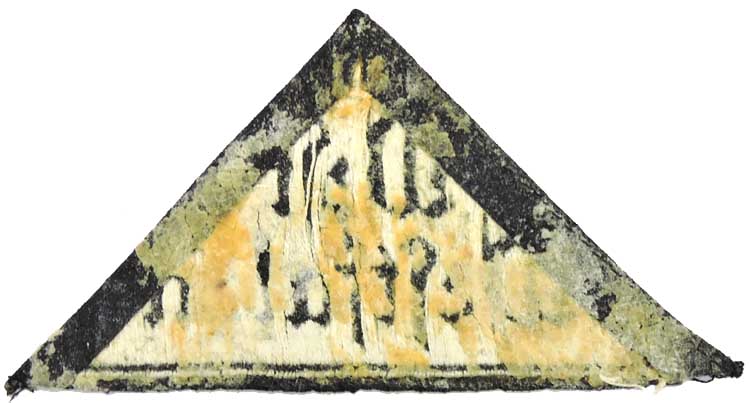 PHYSICAL DESCRIPTION: Black rayon construction isosceles triangle with a machine woven Gothic script in two lines, "West Westfalen" in grey to its interior. Glue spots to the reverse indicating it was most probably in a scrap book at some point.