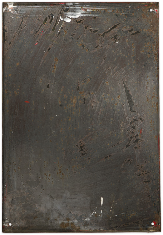 PHYSICAL DESCRIPTION: A 18 1/4" x 26 7/8" metal sign with white borders to a red field with a white disk to it. Upon the disk is the N.S.K.O.V. logo of a mobile swastika to the center of an Iron Cross against a wreathed, vertical sword. No evidence of the swastika presently remains, as it was, undoubtedly, deliberately defaced. Underneath the disk and logo is, in black, "National-Sozialistische Kriegsopferversorgung" and "Kameradschaft Goisern" (Comradeship or Service-club Goisern). "C.Robert Dold, Offenberg i.B." is printed to the lower right white border. Moderate surface spotting may be seen to its blackened reverse. Aside from the aforementioned defacing of the swastika, there is noticeable wear, and surface spotting, to all four corners, and along the white border to the left of the sign. Typical age soiling and surface scratching is also evident, particularly over the hilt of the sword and some of the letters.