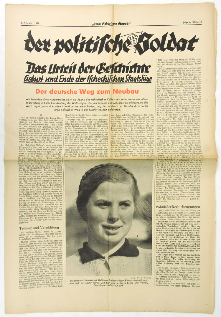 PHYSICAL DESCRIPTION: A four page Newspaper that measures approximately 33cm x 47cm, dated for "3. November 1938". The paper is in fine condition with typical wear and yellowing.
