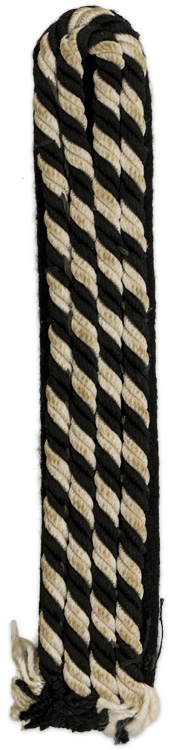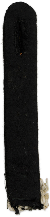 PHYSICAL DESCRIPTION: Second pattern, (Circa October 1934 May 1945), narrow, sew on, shoulder cord/strap of dual, alternating, twisted, bright, silver/aluminum and dual, black rayon cords mounted on a black wool base.