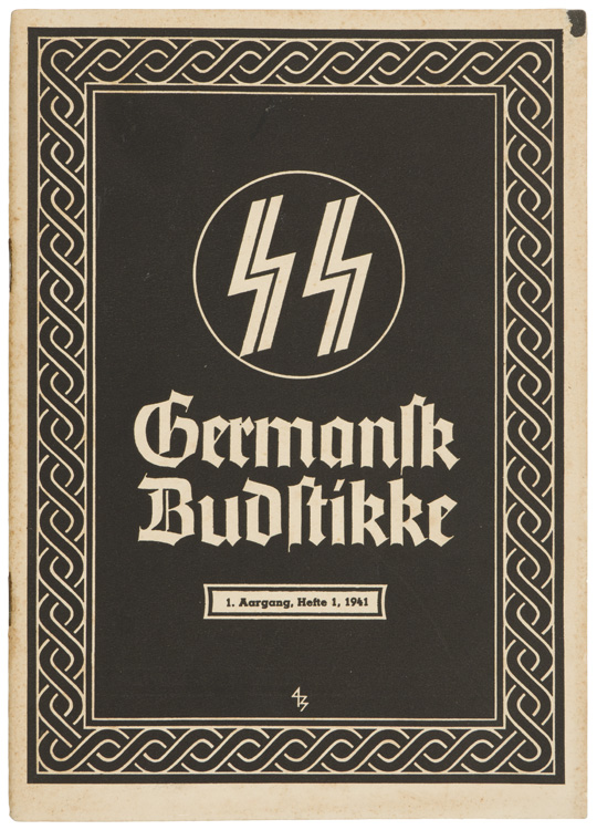 BACKGROUND: The Norwegian, NS, Nasjonal Samling, (National Unity), party, founded in May 1933 by Vidkun Quisling, was designed and structured on the same basis as the NSDAP. Although the NS party never enjoyed any electoral success prior to the invasion of Norway by the Germans, Quisling proclaimed himself Prime Minister after the invasion. This was originally rejected by the Germans, but in September 1940 Quisling’s NS party was declared the only legal political party in Norway and in February 1942 Hitler finally appointed Quisling as Minister President of Norway. Although the nominal head of state Quisling was just a puppet collaborator with the real power of Norway being secured by the German Reichskommissar Josef Terboven. The NS was divided into numerous sub-sections, designated, "Hird’s", which is an ancient Norwegian word translating roughly as, the king’s followers. The Rikshird, (National Followers), was founded in 1933 for all active party members between 18 and 45 years of age and would be roughly equivalent to the German SA, Sturmabteilung. On May 16TH 1941 the Norwegian Police Chief Jonas Lie with Reichskommissar Josef Terboven assistance formed the Norges-SS, (Norwegian-SS), from Rikshird personnel without Quisling’s knowledge or approval. On May 21ST Reichsführer-SS Heinrich Himmler traveled to Oslo for the official announcement of the formation of the Norges-SS much to Quisling’s chagrin. On July 21ST 1942 the Norges-SS was converted into the Germanische-SS Norge, (Germanic SS-Norway), and cut all ties with the Rikshird. The development of Germanische-SS Norge was an attempt by Himmler to consolidate all non-German SS formation of western Europe into one single organization with all of its personnel swearing their oath of allegiance to Hitler.
